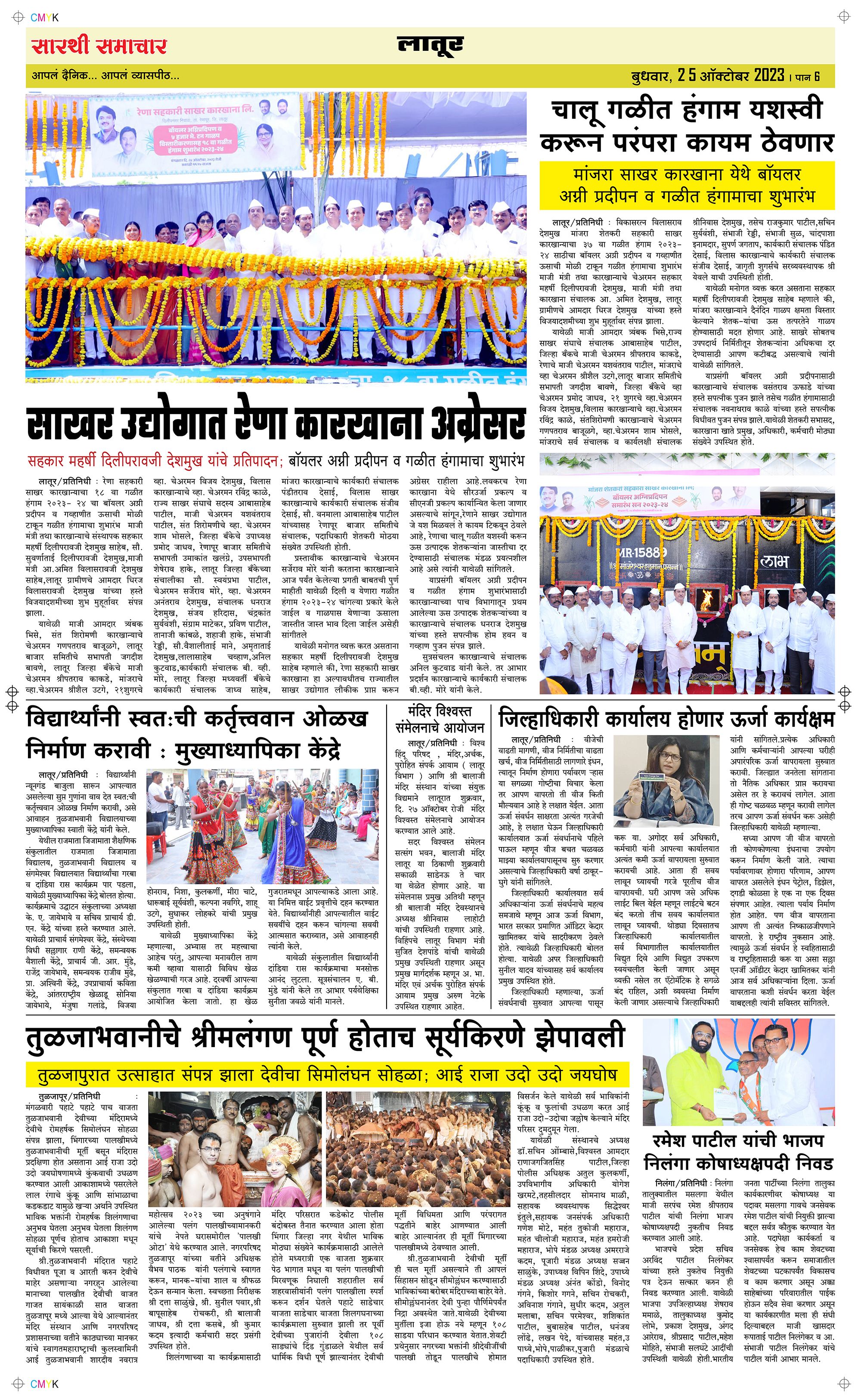 Latur Page: 6 October 25, 2023 << First << 6 >> Last >> Page 1Page 2Page 3Page 4Page 5Page 6 × Latur Page 1Page 2Page 3Page 4Page 5Page 6 << First << 6 >> Last >> Page 1Page 2Page 3Page 4Page 5Page 6 Page 6