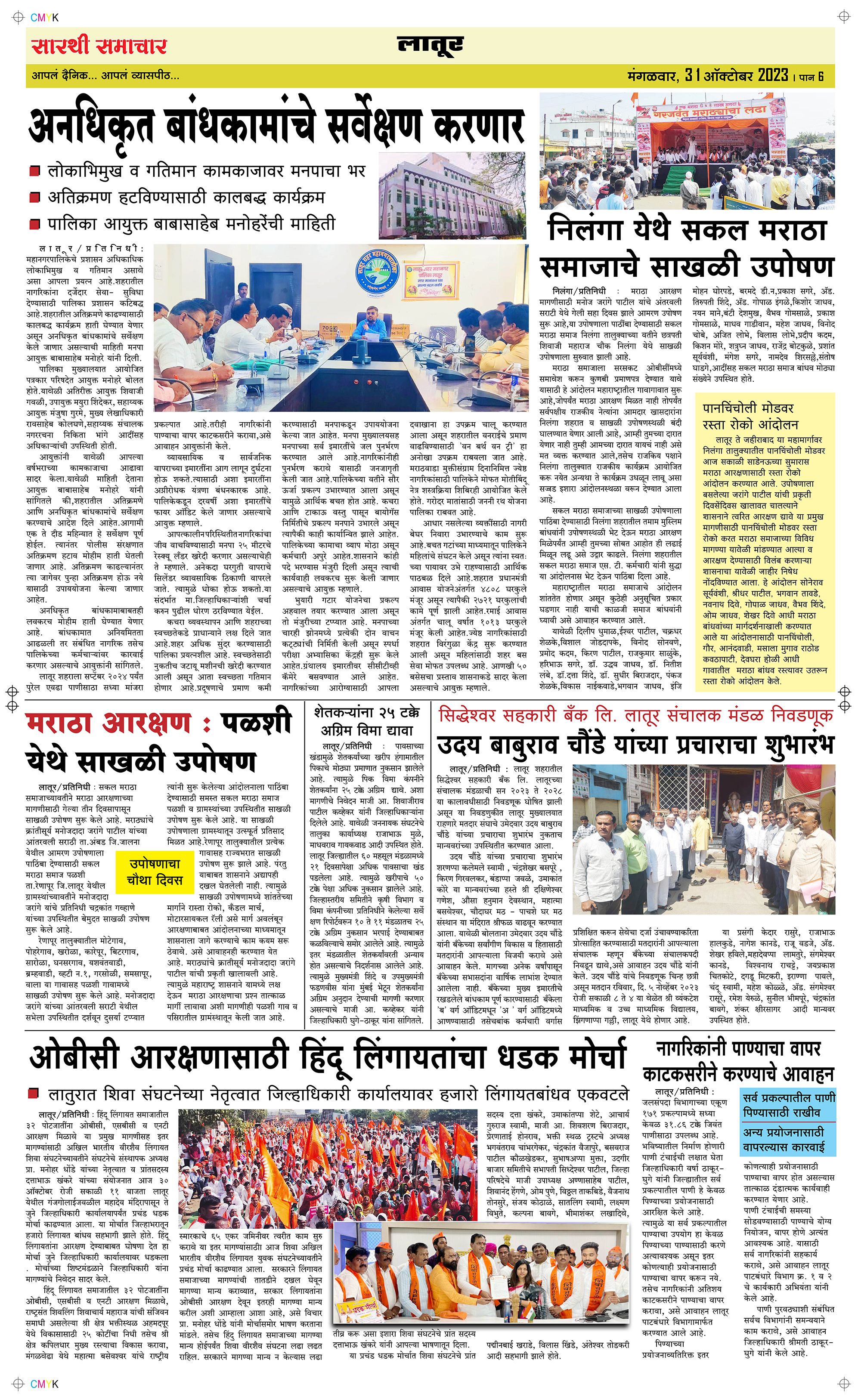 Latur Page: 6 October 31, 2023 << First << 6 >> Last >> Page 1Page 2Page 3Page 4Page 5Page 6 × Latur Page 1Page 2Page 3Page 4Page 5Page 6 << First << 6 >> Last >> Page 1Page 2Page 3Page 4Page 5Page 6 Page 6