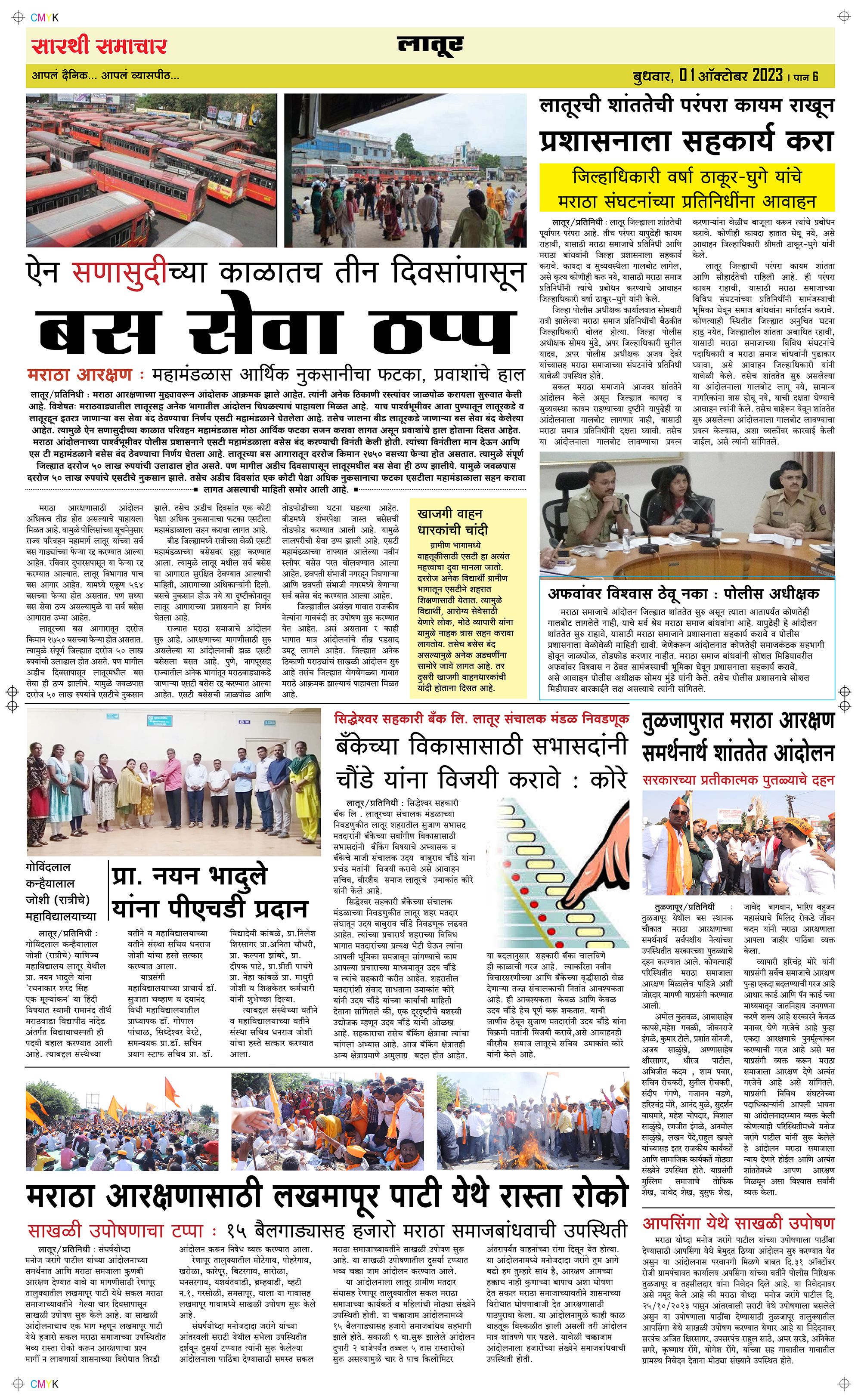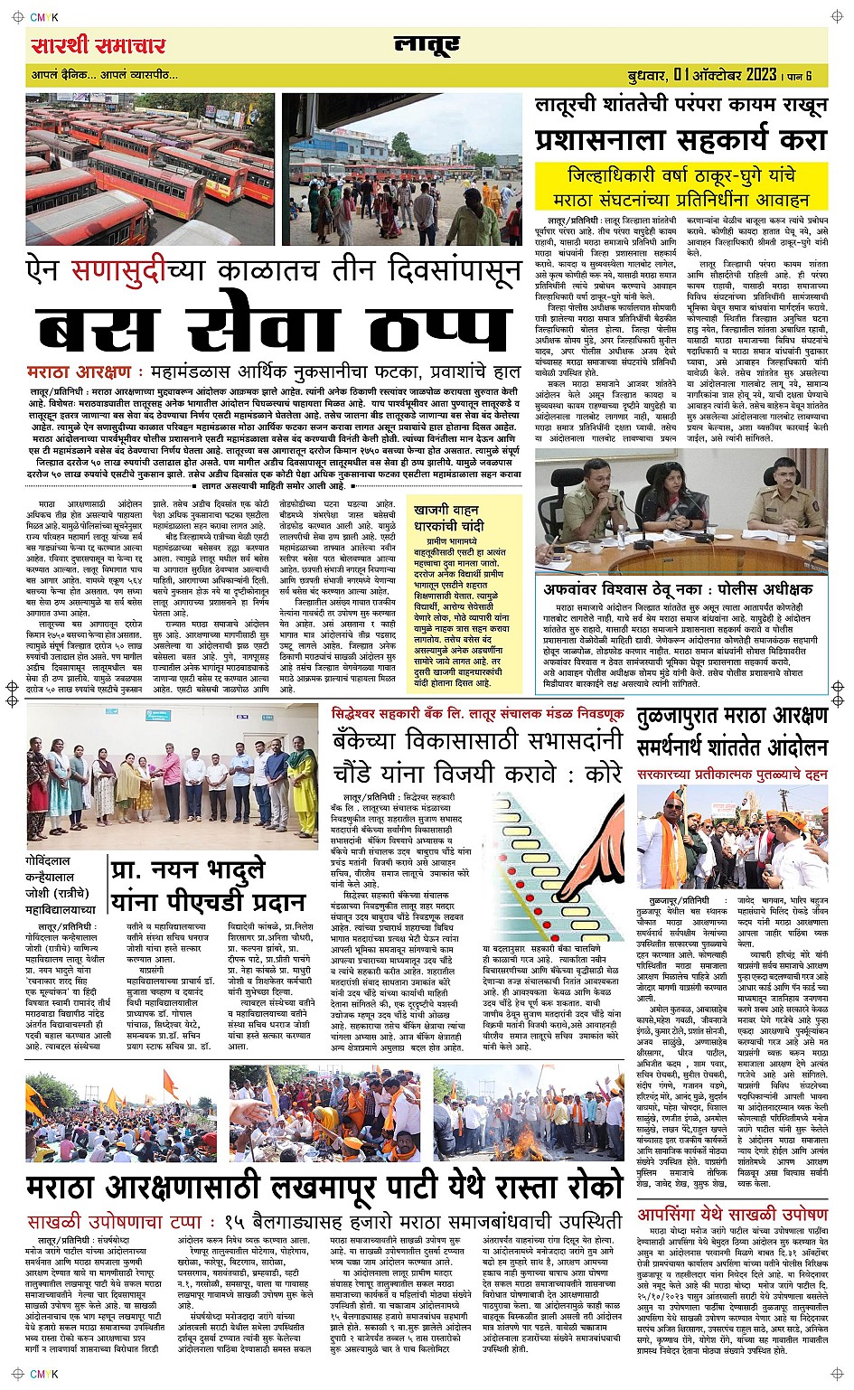 Latur Page: 6 November 01, 2023 << First << 6 >> Last >> Page 1Page 2Page 3Page 4Page 5Page 6 × Latur Page 1Page 2Page 3Page 4Page 5Page 6 << First << 6 >> Last >> Page 1Page 2Page 3Page 4Page 5Page 6 Page 6