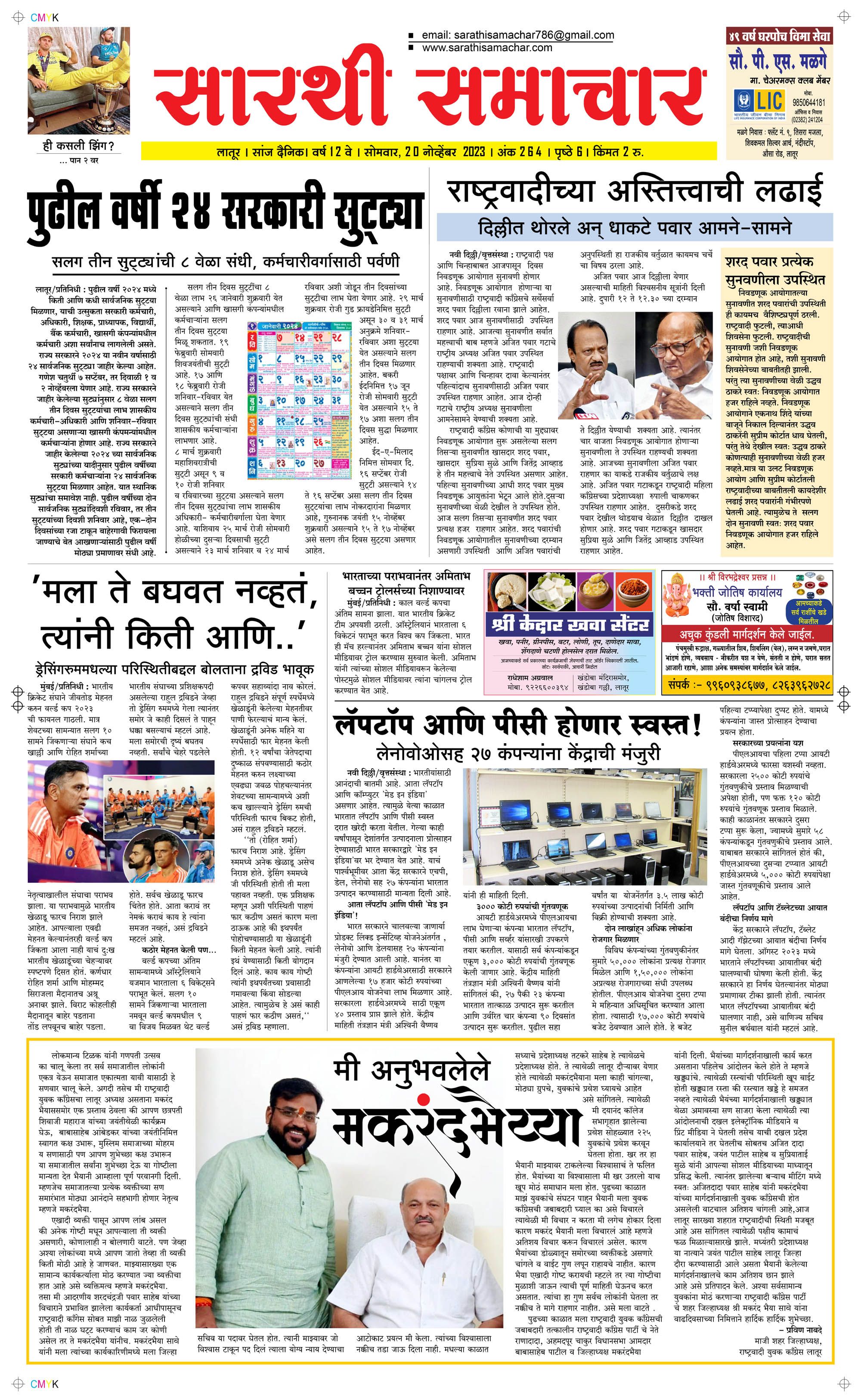 Latur November 20, 2023 << First << 1 >> Last >> Page 1Page 2Page 3Page 4Page 5Page 6 × Latur Page 1Page 2Page 3Page 4Page 5Page 6 << First << 1 >> Last >> Page 1Page 2Page 3Page 4Page 5Page 6 Page 1