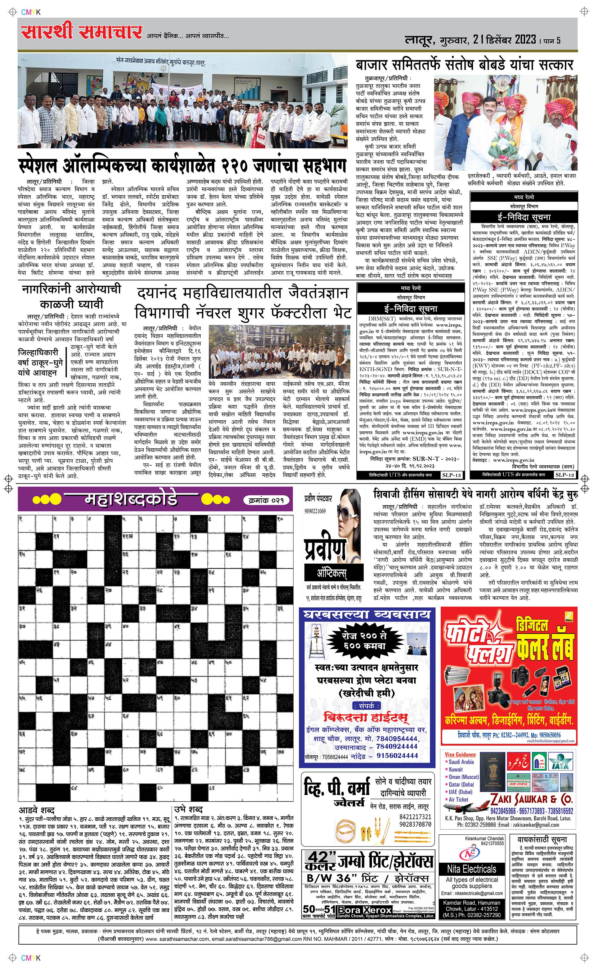 Latur Page: 5 December 21, 2023 << First << 5 >> Last >> Page 1Page 2Page 3Page 4Page 5Page 6 × Latur Page 1Page 2Page 3Page 4Page 5Page 6 << First << 5 >> Last >> Page 1Page 2Page 3Page 4Page 5Page 6 Page 5