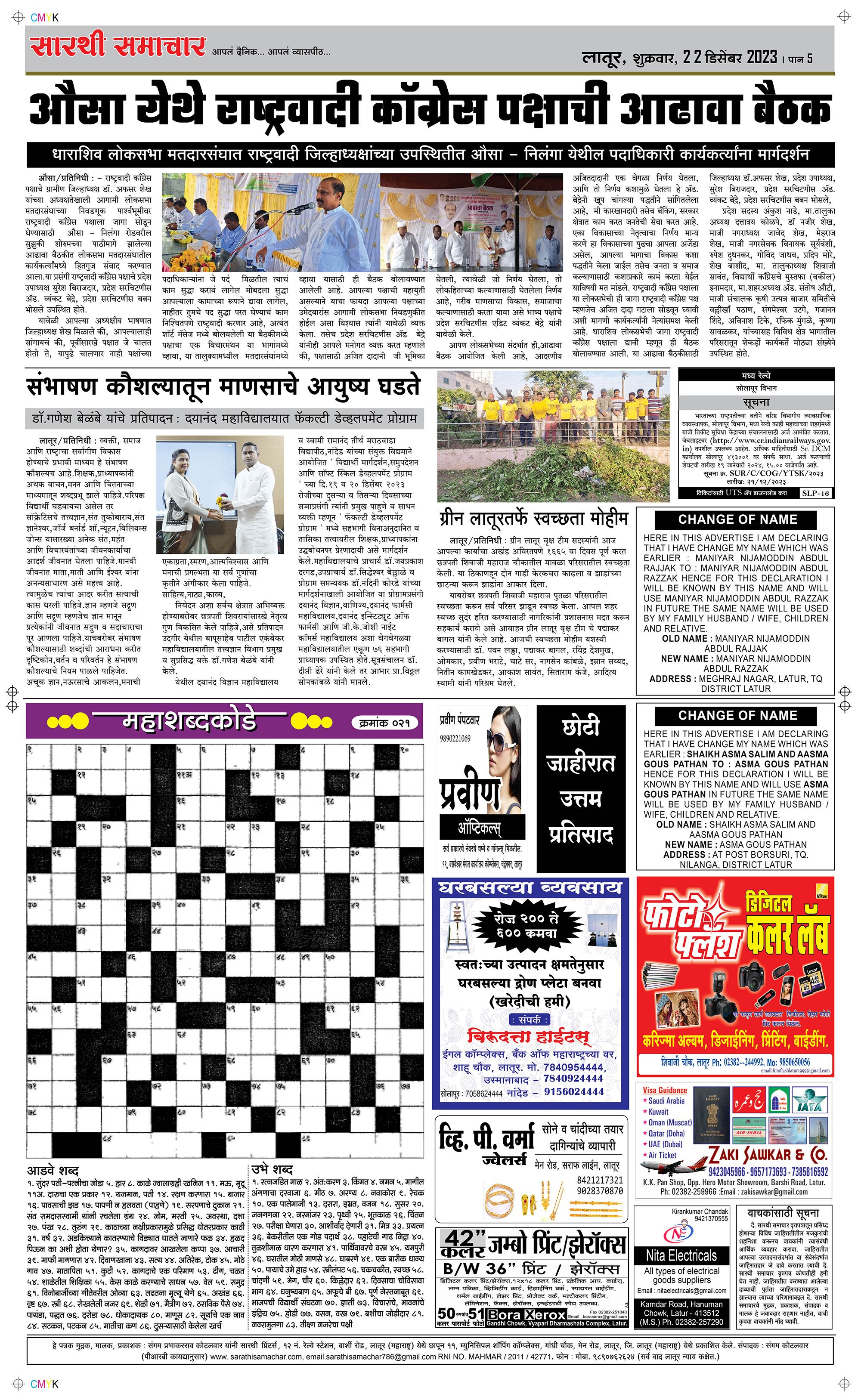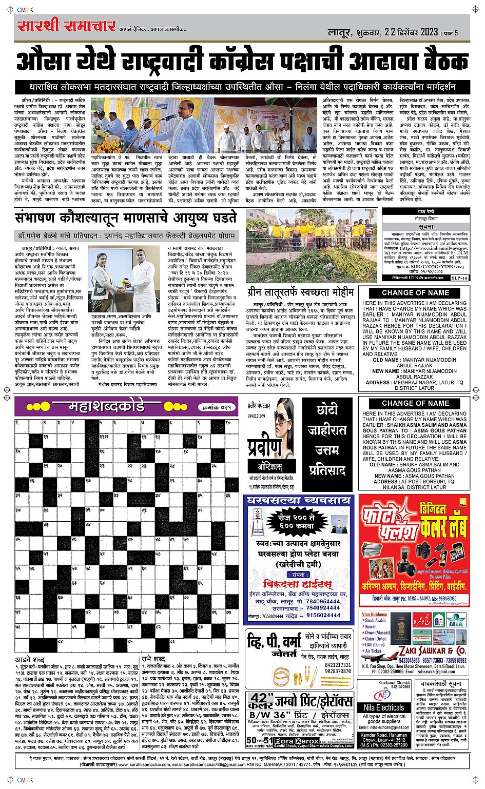 Latur Page: 5 December 22, 2023 << First << 5 >> Last >> Page 1Page 2Page 3Page 4Page 5Page 6 × Latur Page 1Page 2Page 3Page 4Page 5Page 6 << First << 5 >> Last >> Page 1Page 2Page 3Page 4Page 5Page 6 Page 5