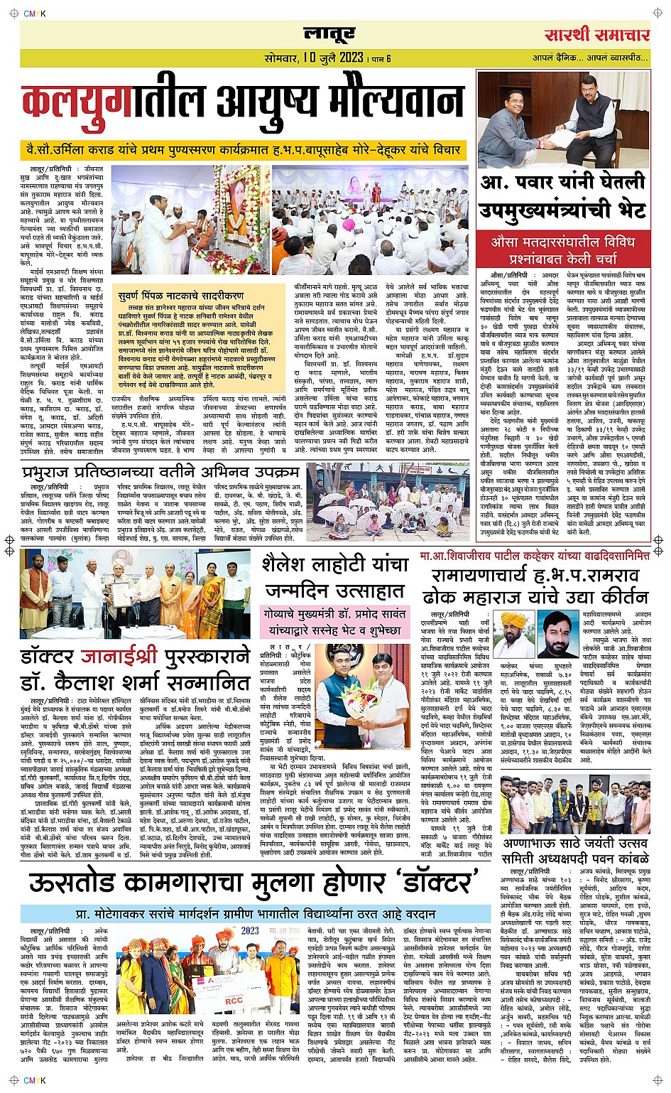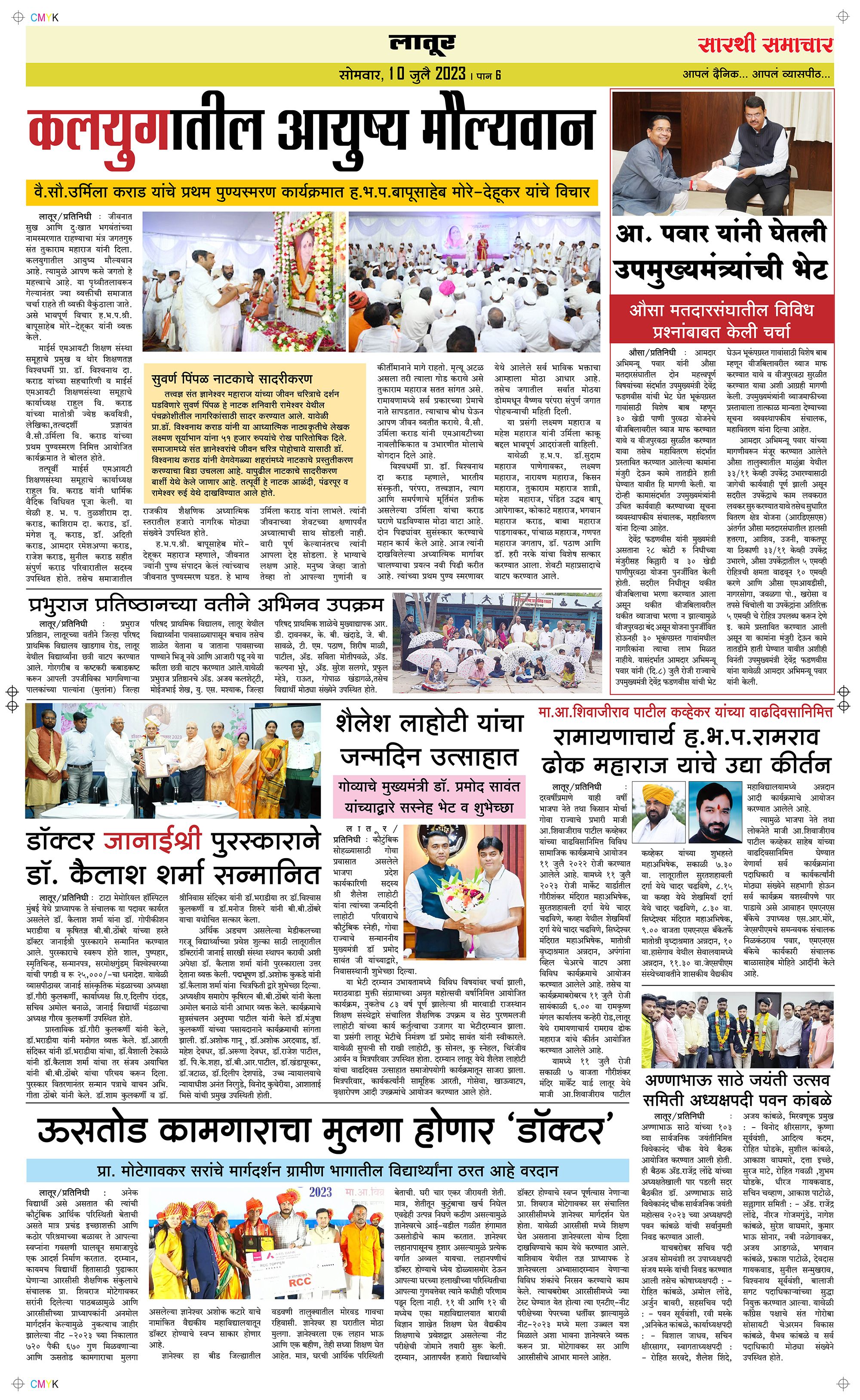Latur Page: 6 July 10, 2023 << First << 6 >> Last >> Page 1Page 2Page 3Page 4Page 5Page 6 × Latur Page 1Page 2Page 3Page 4Page 5Page 6 << First << 6 >> Last >> Page 1Page 2Page 3Page 4Page 5Page 6 Page 6