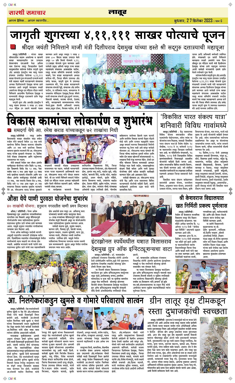 Latur Page: 6 December 27, 2023 << First << 6 >> Last >> Page 1Page 2Page 3Page 4Page 5Page 6 × Latur Page 1Page 2Page 3Page 4Page 5Page 6 << First << 6 >> Last >> Page 1Page 2Page 3Page 4Page 5Page 6 Page 6