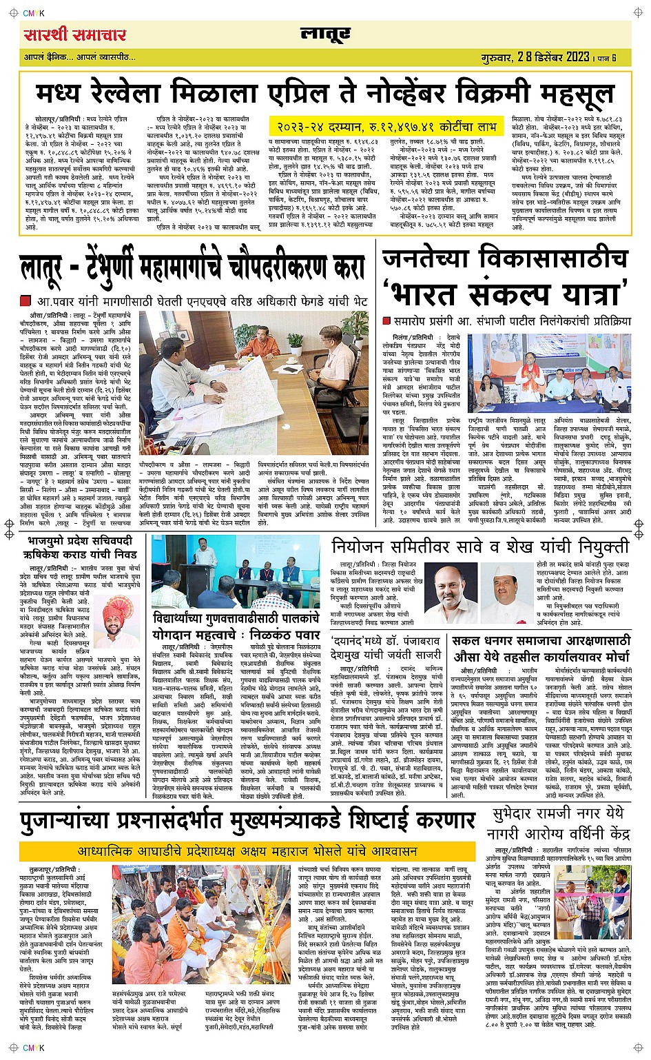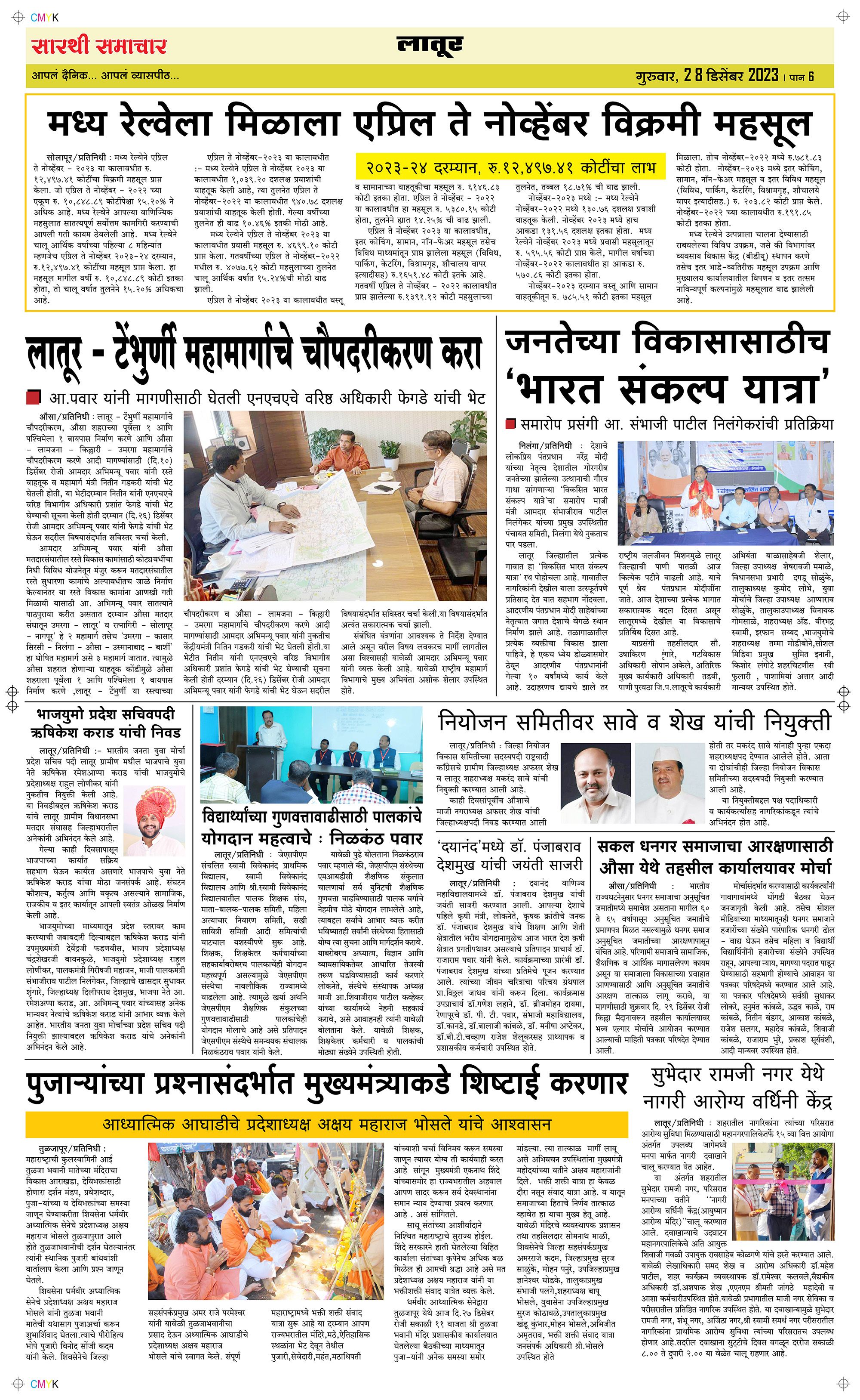 Latur Page: 6 December 28, 2023 << First << 6 >> Last >> Page 1Page 2Page 3Page 4Page 5Page 6 × Latur Page 1Page 2Page 3Page 4Page 5Page 6 << First << 6 >> Last >> Page 1Page 2Page 3Page 4Page 5Page 6 Page 6