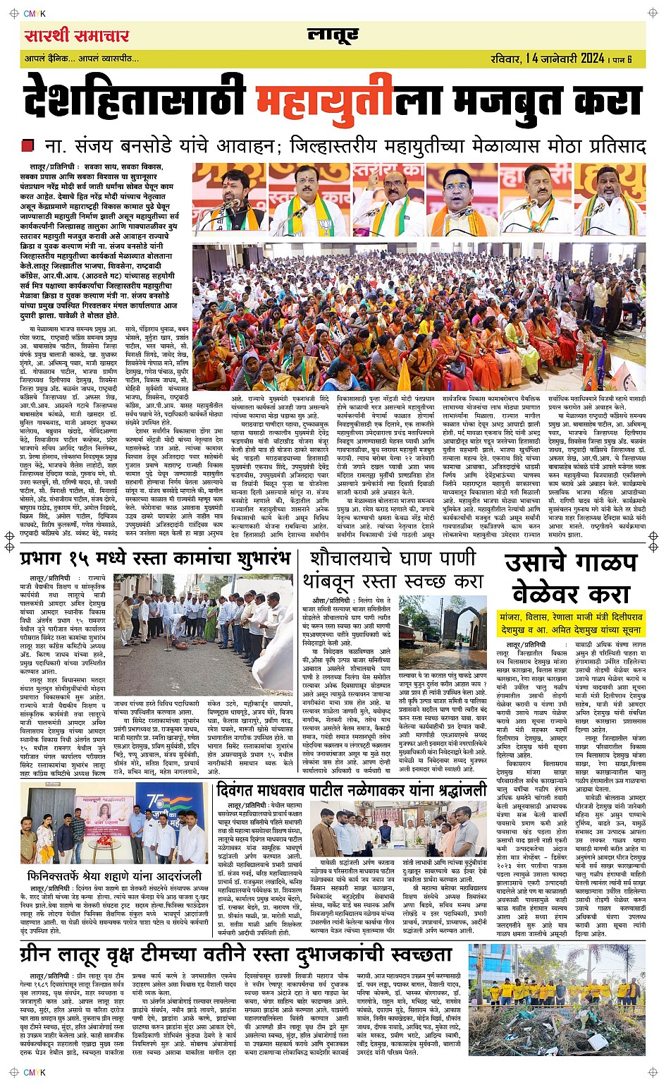Latur Page: 6 January 14, 2024 << First << 6 >> Last >> Page 1Page 2Page 3Page 4Page 5Page 6 × Latur Page 1Page 2Page 3Page 4Page 5Page 6 << First << 6 >> Last >> Page 1Page 2Page 3Page 4Page 5Page 6 Page 6