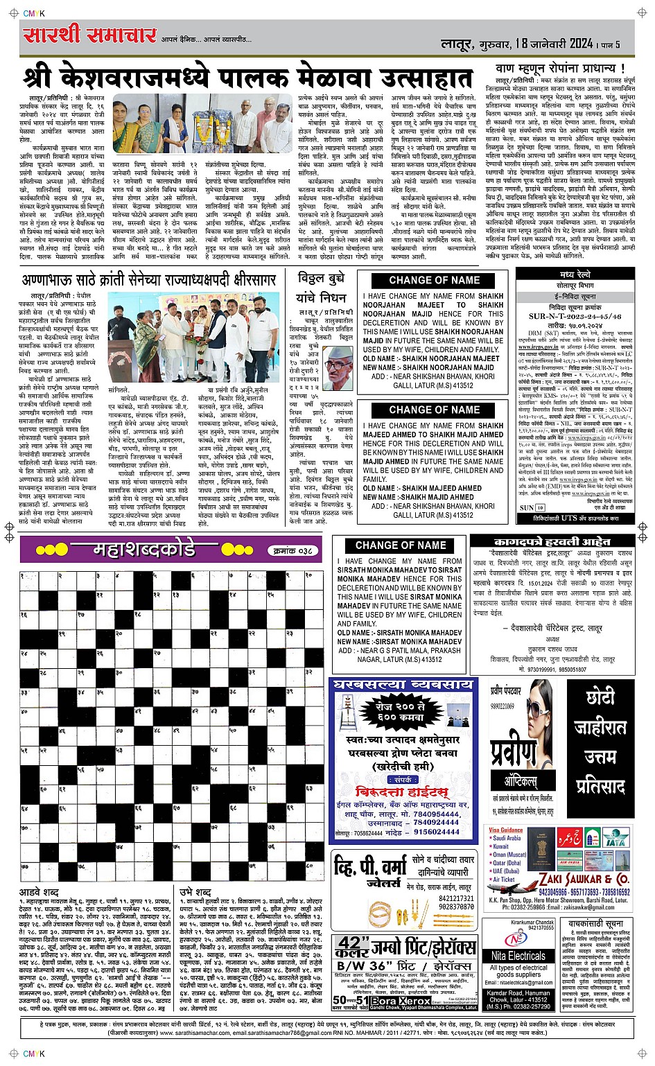 Latur Page: 5 January 18, 2024 << First << 5 >> Last >> Page 1Page 2Page 3Page 4Page 5Page 6 × Latur Page 1Page 2Page 3Page 4Page 5Page 6 << First << 5 >> Last >> Page 1Page 2Page 3Page 4Page 5Page 6 Page 5