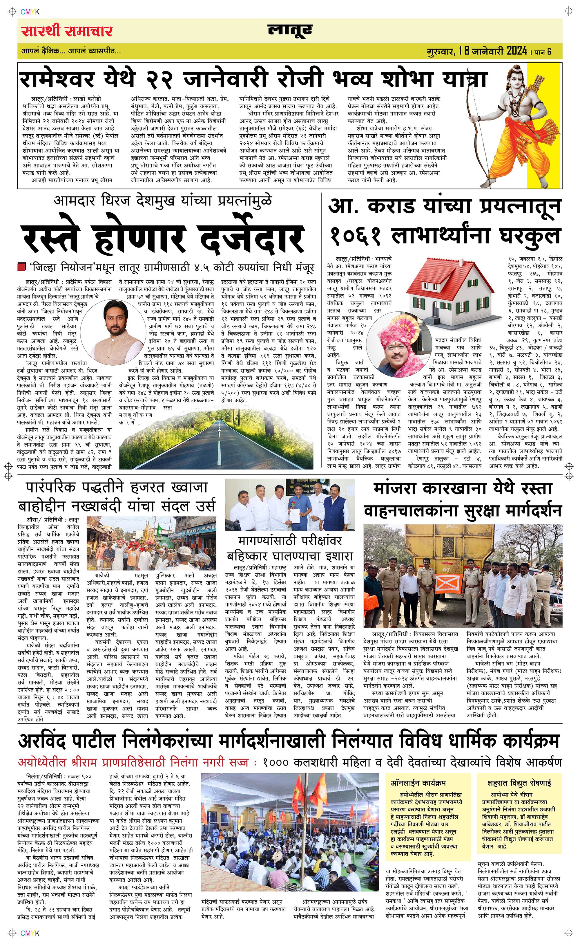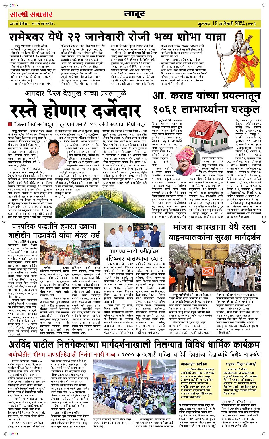 Latur Page: 6 January 18, 2024 << First << 6 >> Last >> Page 1Page 2Page 3Page 4Page 5Page 6 × Latur Page 1Page 2Page 3Page 4Page 5Page 6 << First << 6 >> Last >> Page 1Page 2Page 3Page 4Page 5Page 6 Page 6