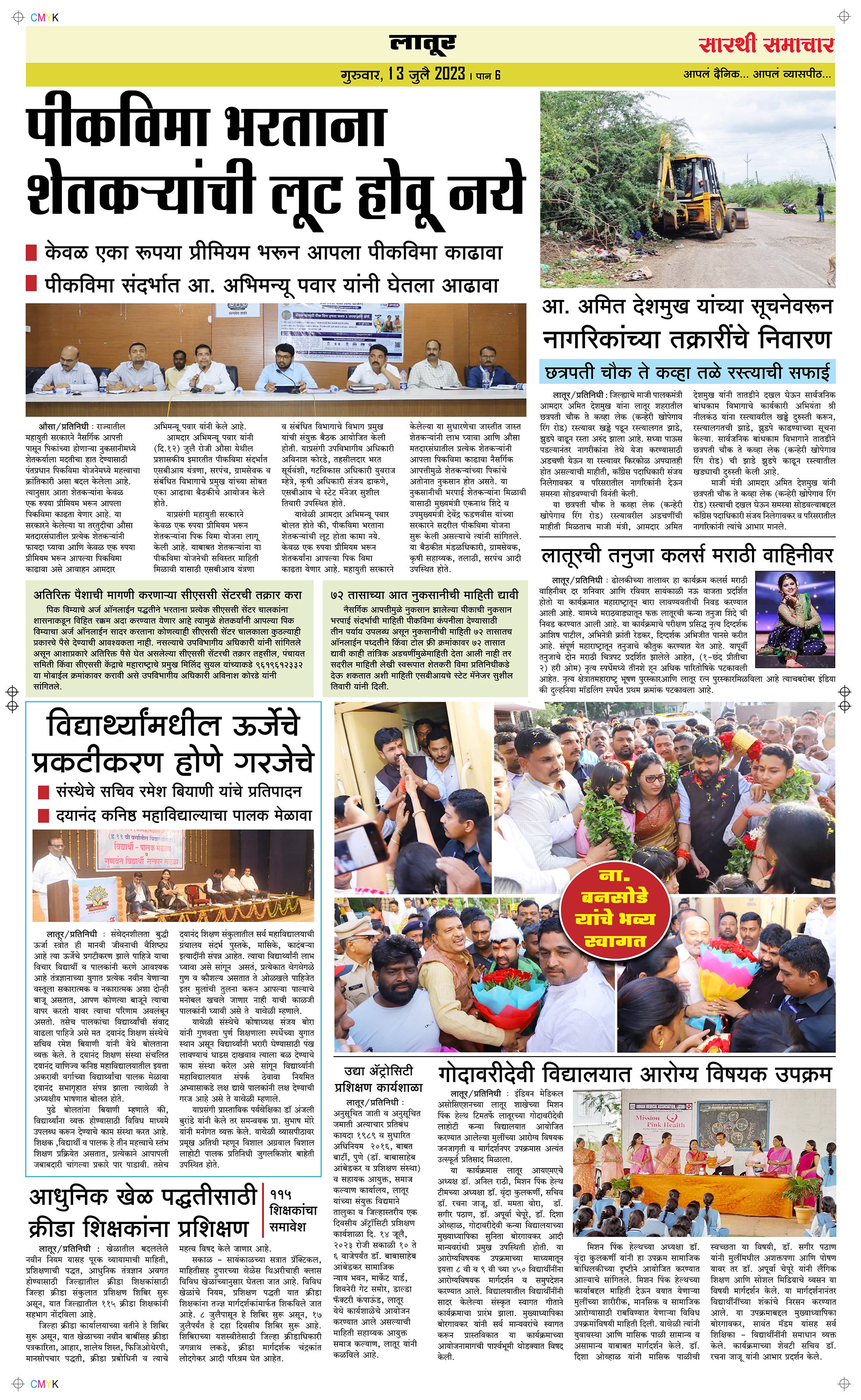 Latur Page: 6 July 13, 2023 << First << 6 >> Last >> Page 1Page 2Page 3Page 4Page 5Page 6 × Latur Page 1Page 2Page 3Page 4Page 5Page 6 << First << 6 >> Last >> Page 1Page 2Page 3Page 4Page 5Page 6 Page 6