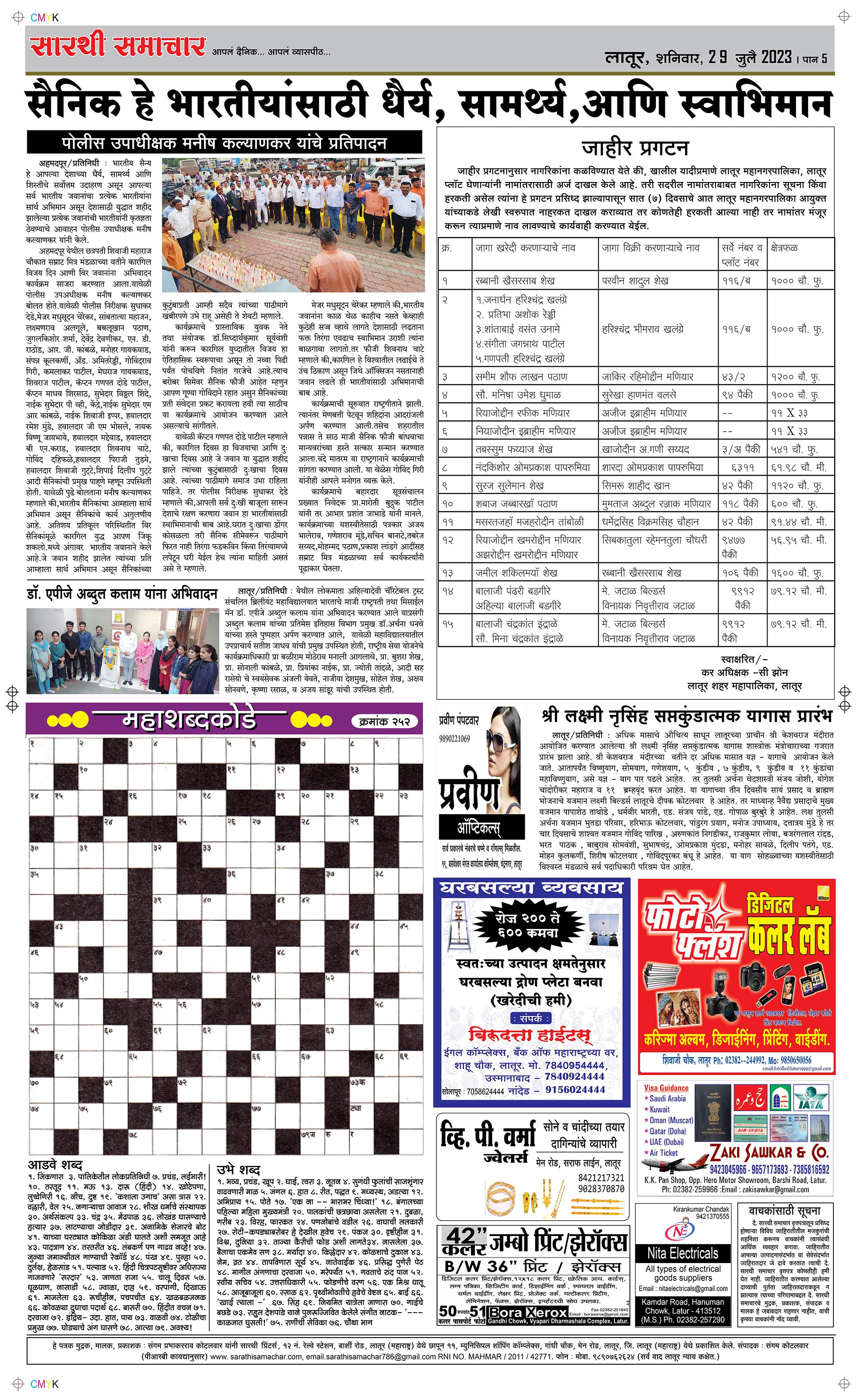 Latur Page: 5 July 29, 2023 << First << 5 >> Last >> Page 1Page 2Page 3Page 4Page 5Page 6 × Latur Page 1Page 2Page 3Page 4Page 5Page 6 << First << 5 >> Last >> Page 1Page 2Page 3Page 4Page 5Page 6 Page 5