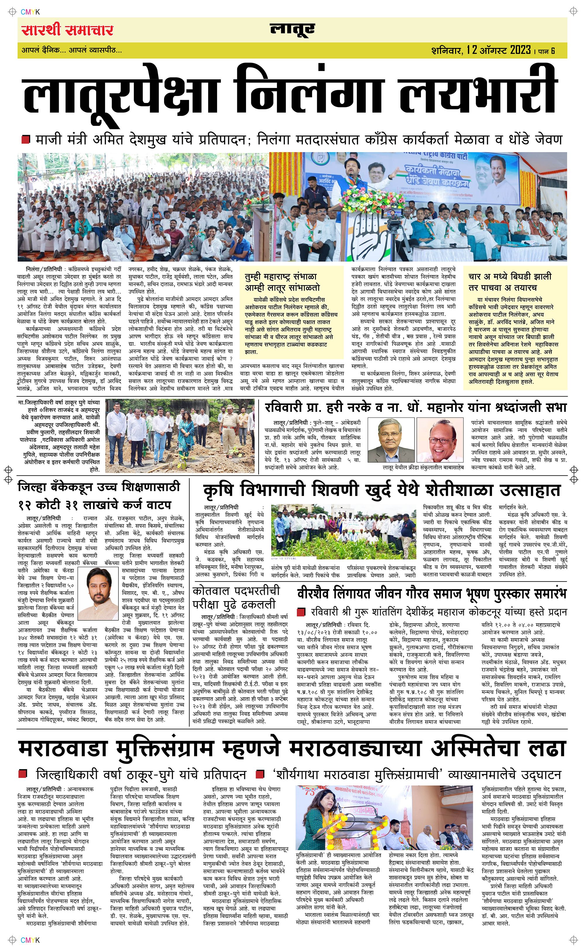 Latur Page: 6 August 12, 2023 << First << 6 >> Last >> Page 1Page 2Page 3Page 4Page 5Page 6 × Latur Page 1Page 2Page 3Page 4Page 5Page 6 << First << 6 >> Last >> Page 1Page 2Page 3Page 4Page 5Page 6 Page 6