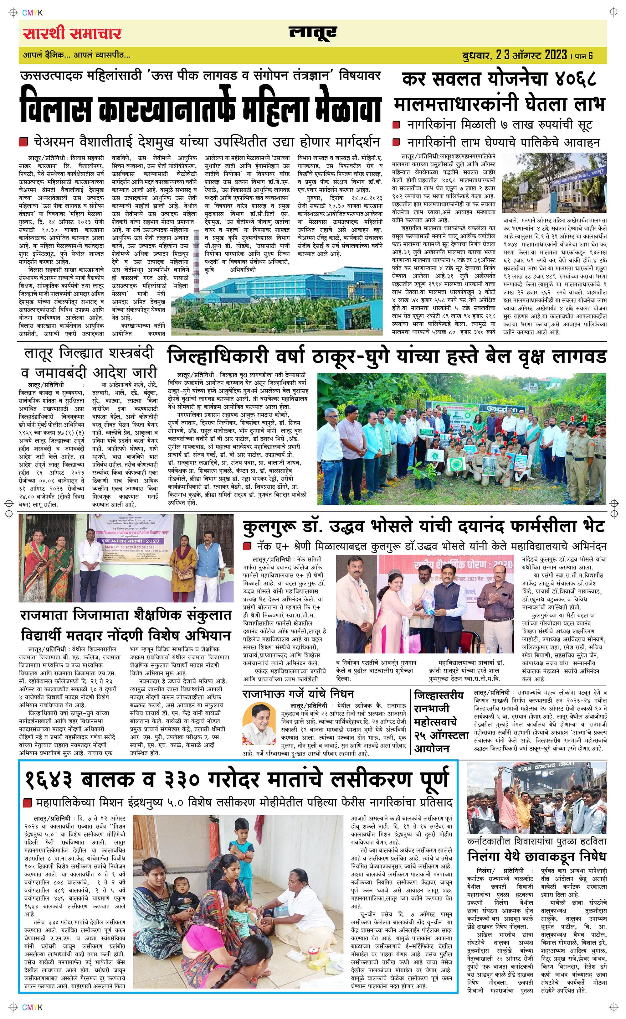 Latur Page: 6 August 23, 2023 << First << 6 >> Last >> Page 1Page 2Page 3Page 4Page 5Page 6 × Latur Page 1Page 2Page 3Page 4Page 5Page 6 << First << 6 >> Last >> Page 1Page 2Page 3Page 4Page 5Page 6 Page 6