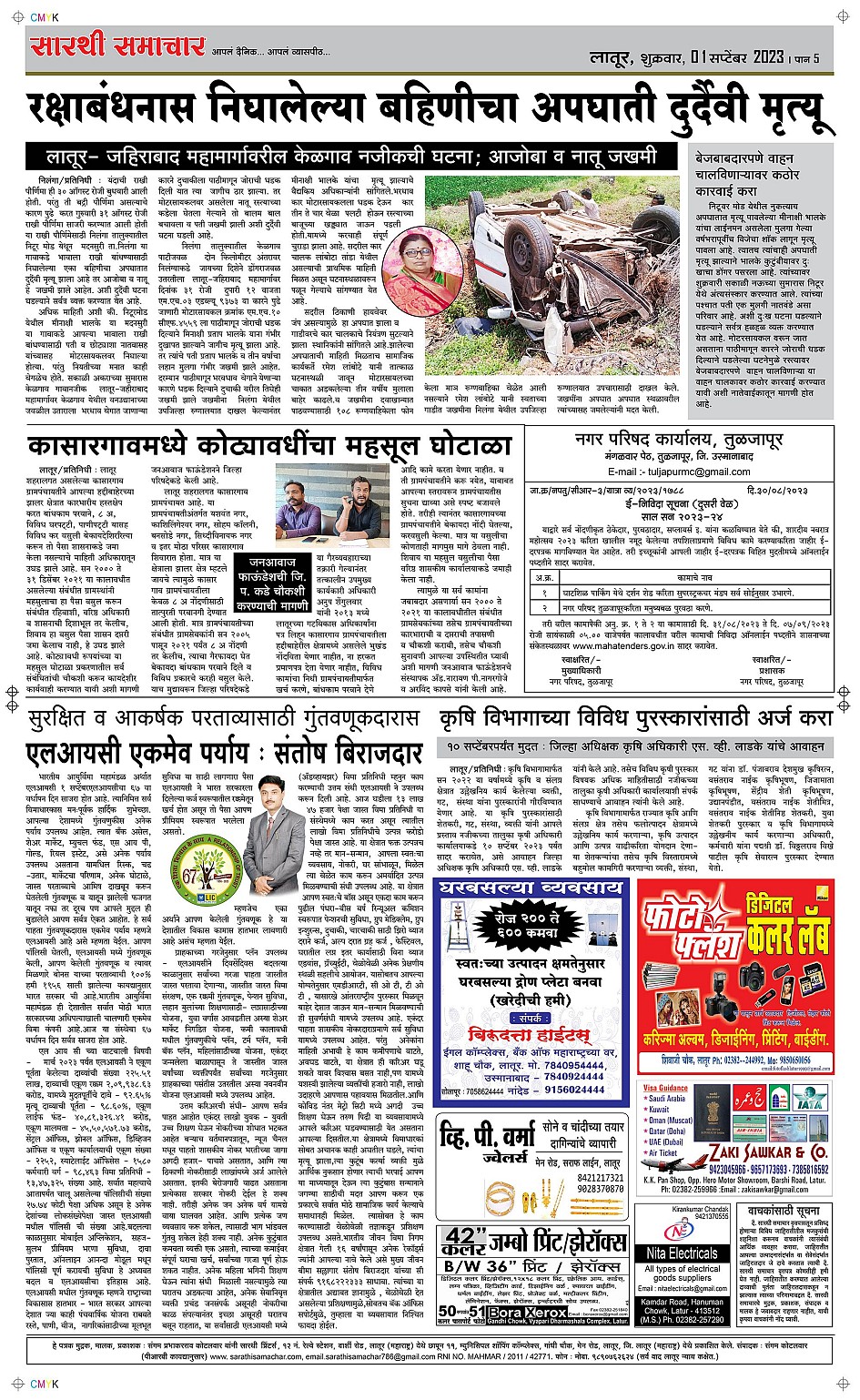 Latur Page: 5 September 01, 2023 << First << 5 >> Last >> Page 1Page 2Page 3Page 4Page 5Page 6 × Latur Page 1Page 2Page 3Page 4Page 5Page 6 << First << 5 >> Last >> Page 1Page 2Page 3Page 4Page 5Page 6 Page 5