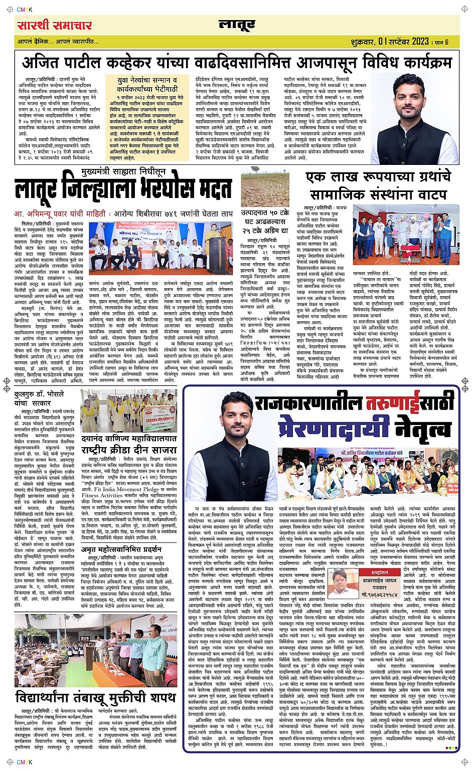 Latur Page: 6 September 01, 2023 << First << 6 >> Last >> Page 1Page 2Page 3Page 4Page 5Page 6 × Latur Page 1Page 2Page 3Page 4Page 5Page 6 << First << 6 >> Last >> Page 1Page 2Page 3Page 4Page 5Page 6 Page 6