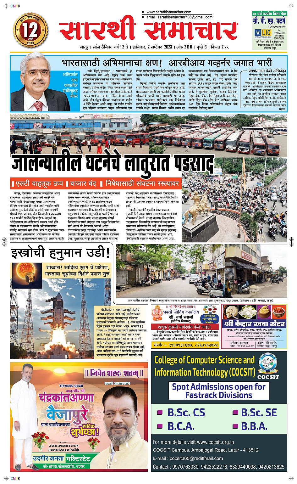 Latur September 02, 2023 << First << 1 >> Last >> Page 1Page 2Page 3Page 4Page 5Page 6 × Latur Page 1Page 2Page 3Page 4Page 5Page 6 << First << 1 >> Last >> Page 1Page 2Page 3Page 4Page 5Page 6 Page 1