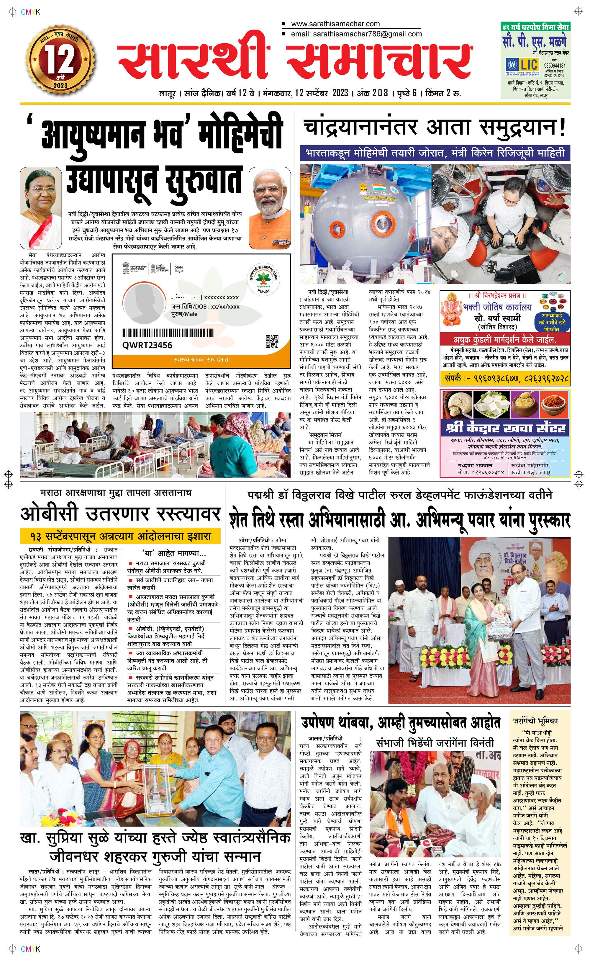 Latur September 12, 2023 << First << 1 >> Last >> Page 1Page 2Page 3Page 4Page 5Page 6 × Latur Page 1Page 2Page 3Page 4Page 5Page 6 << First << 1 >> Last >> Page 1Page 2Page 3Page 4Page 5Page 6 Page 1