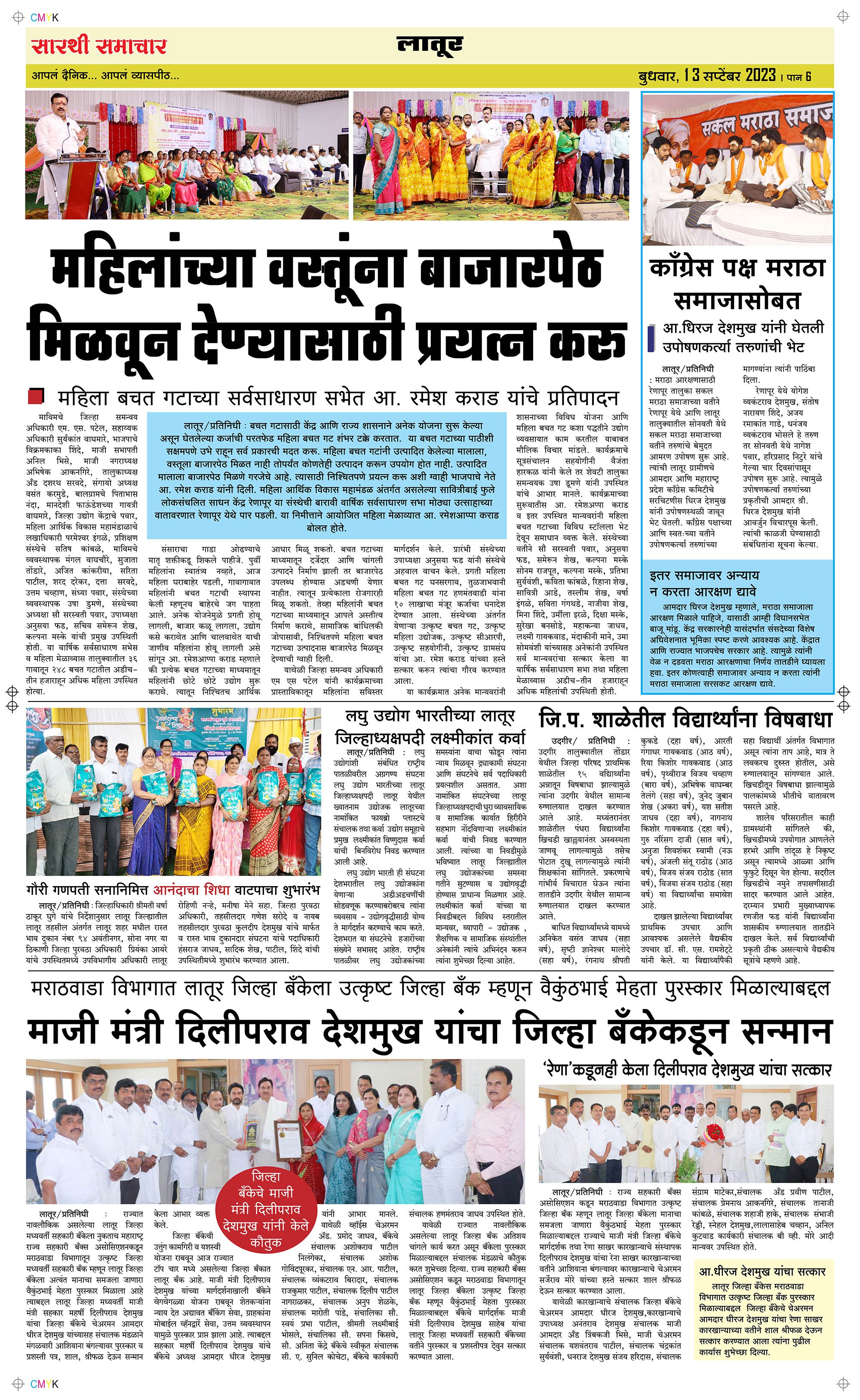 Latur Page: 6 September 13, 2023 << First << 6 >> Last >> Page 1Page 2Page 3Page 4Page 5Page 6 × Latur Page 1Page 2Page 3Page 4Page 5Page 6 << First << 6 >> Last >> Page 1Page 2Page 3Page 4Page 5Page 6 Page 6