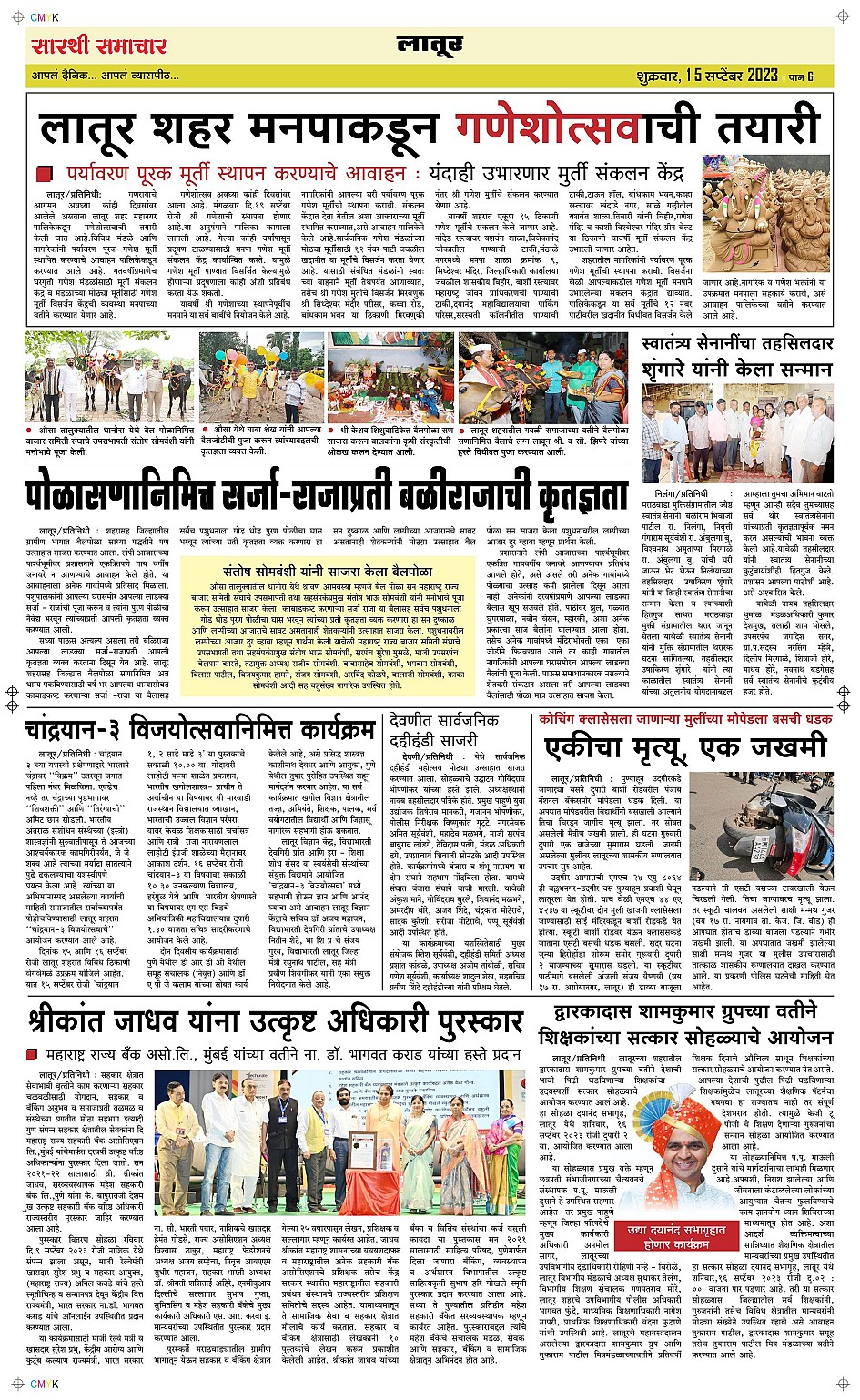 Latur Page: 6 September 15, 2023 << First << 6 >> Last >> Page 1Page 2Page 3Page 4Page 5Page 6 × Latur Page 1Page 2Page 3Page 4Page 5Page 6 << First << 6 >> Last >> Page 1Page 2Page 3Page 4Page 5Page 6 Page 6
