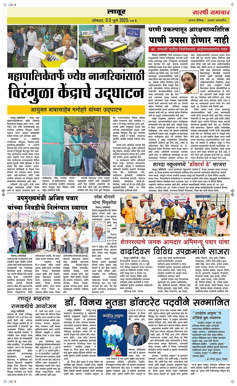 Latur Page: 6 July 03, 2023 << First << 6 >> Last >> Page 1Page 2Page 3Page 4Page 5Page 6 × Latur Page 1Page 2Page 3Page 4Page 5Page 6 << First << 6 >> Last >> Page 1Page 2Page 3Page 4Page 5Page 6 Page 6