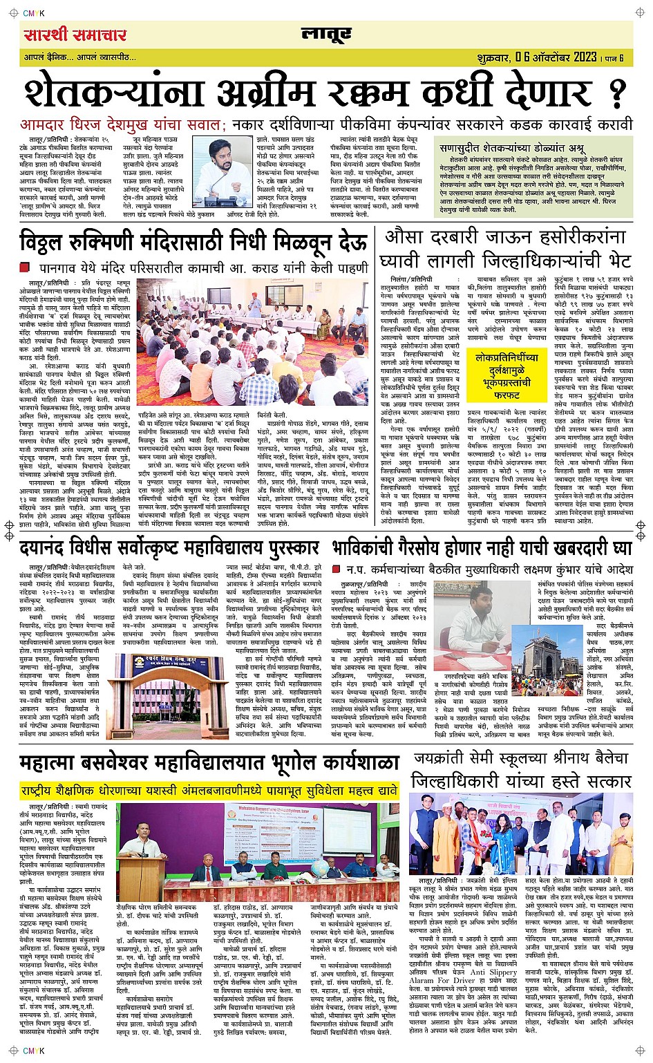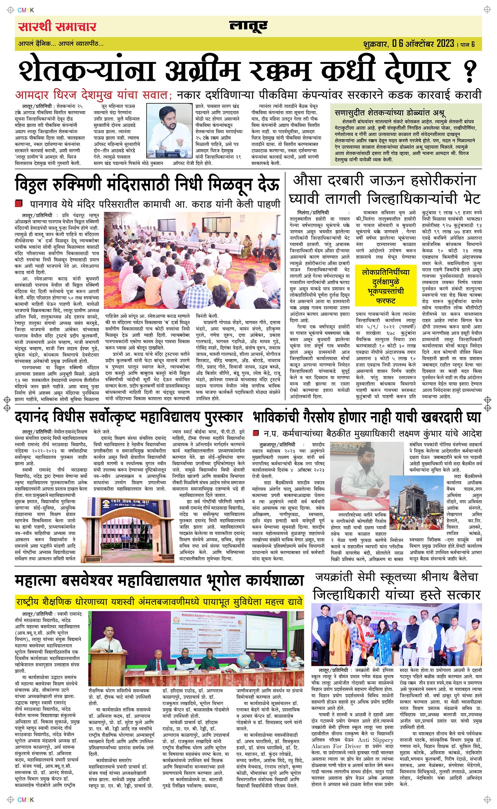 Latur Page: 6 October 06, 2023 << First << 6 >> Last >> Page 1Page 2Page 3Page 4Page 5Page 6 × Latur Page 1Page 2Page 3Page 4Page 5Page 6 << First << 6 >> Last >> Page 1Page 2Page 3Page 4Page 5Page 6 Page 6