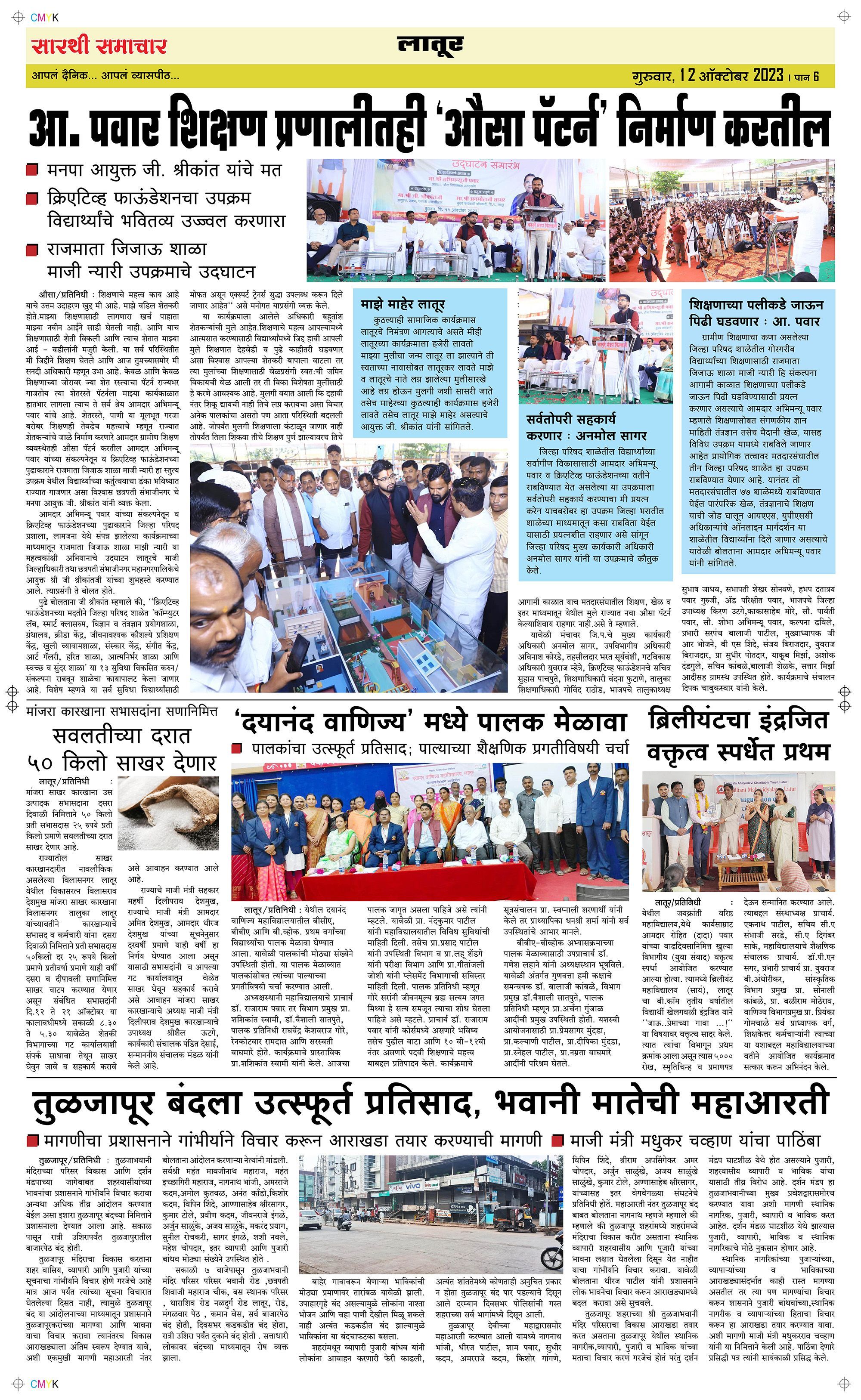 Latur Page: 6 October 12, 2023 << First << 6 >> Last >> Page 1Page 2Page 3Page 4Page 5Page 6 × Latur Page 1Page 2Page 3Page 4Page 5Page 6 << First << 6 >> Last >> Page 1Page 2Page 3Page 4Page 5Page 6 Page 6